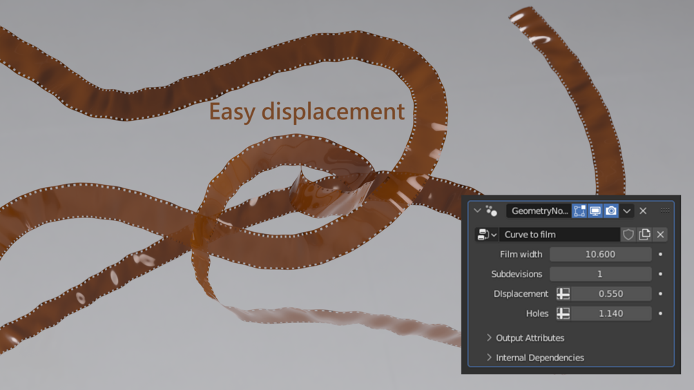 Procedural film generator for blenders Geometry nodes that turns curves into celluloid film